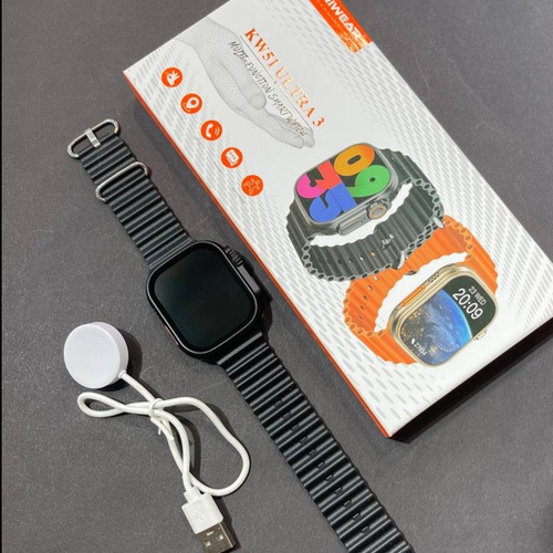 ساعت هوشمند اولترا مدل kw 51 ultra3 با یک بند دور مشکی